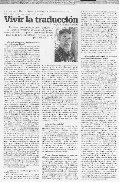 Vivir la traducción (entrevista) [artículo] Sergio Rodríguez Saavedra.