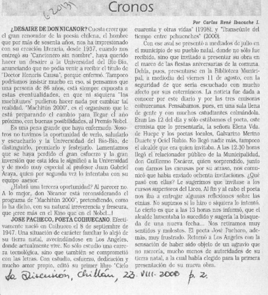 A Nicanor Parra (sobre Pezoa Véliz) [artículo] Filebo.