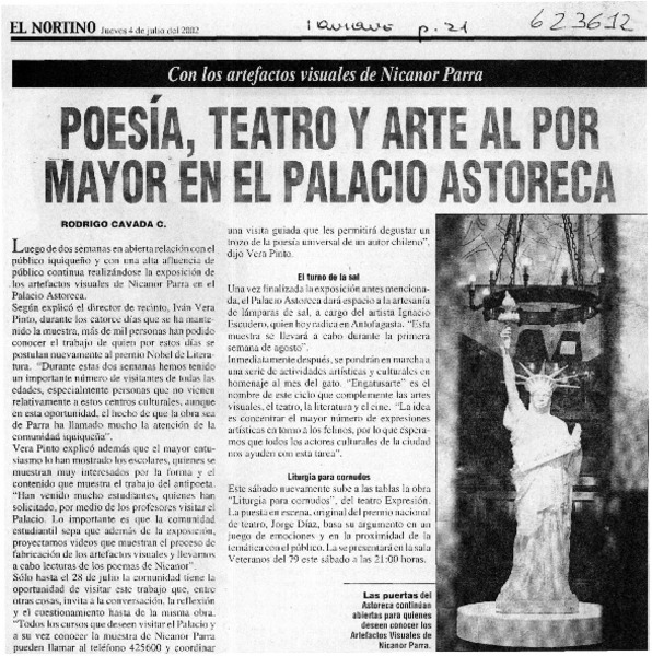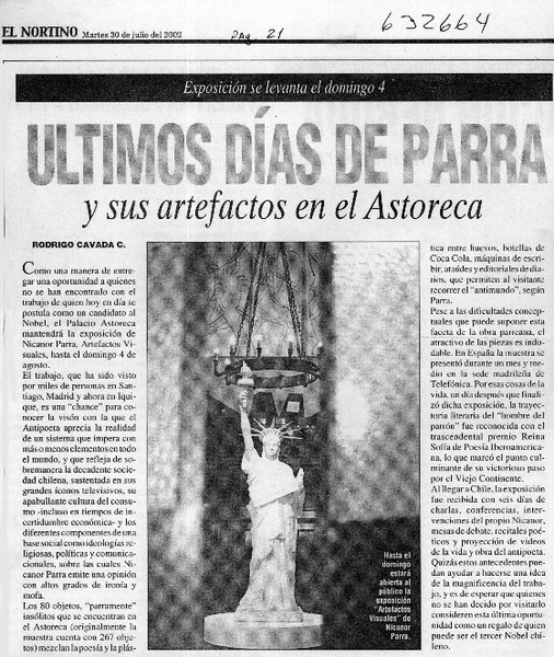 Últimos días de Parra y sus artefactos en el Astoreca [artículo] Rodrigo Cavada C.