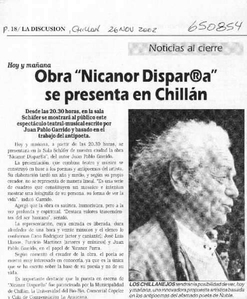 Antipoesía de Nicanor Parra llega de nuevo a Concepción [artículo]