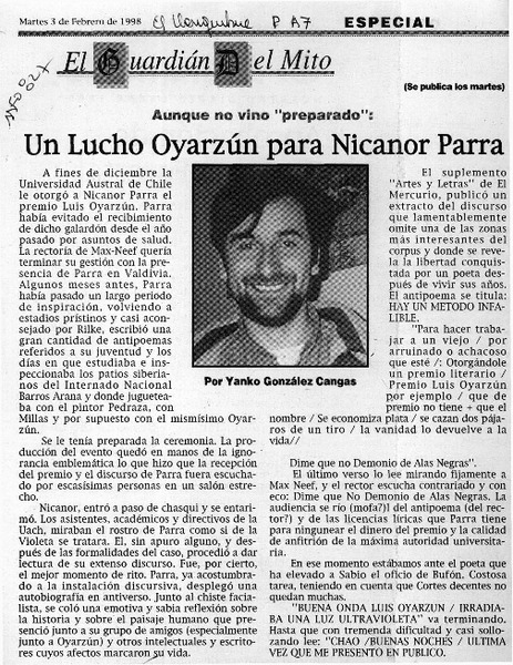 Un Lucho Oyarzún para Nicanor Parra [artículo] Yanko González Cangas.