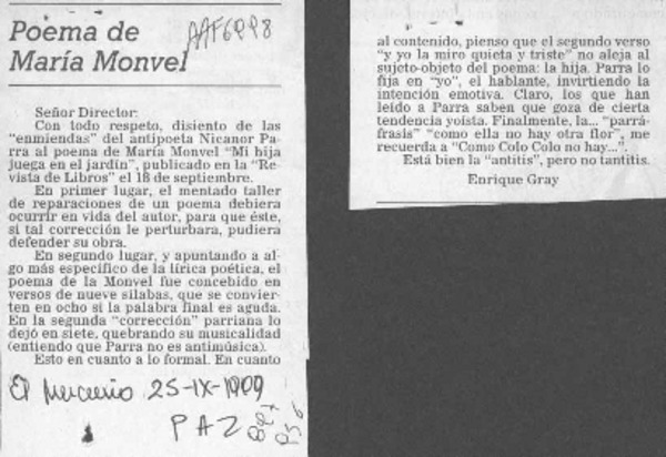 Autores chilenos - Parra, Nicanor - Gray, Enrique - Monvel, María