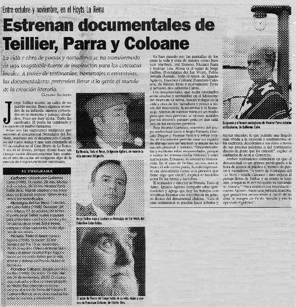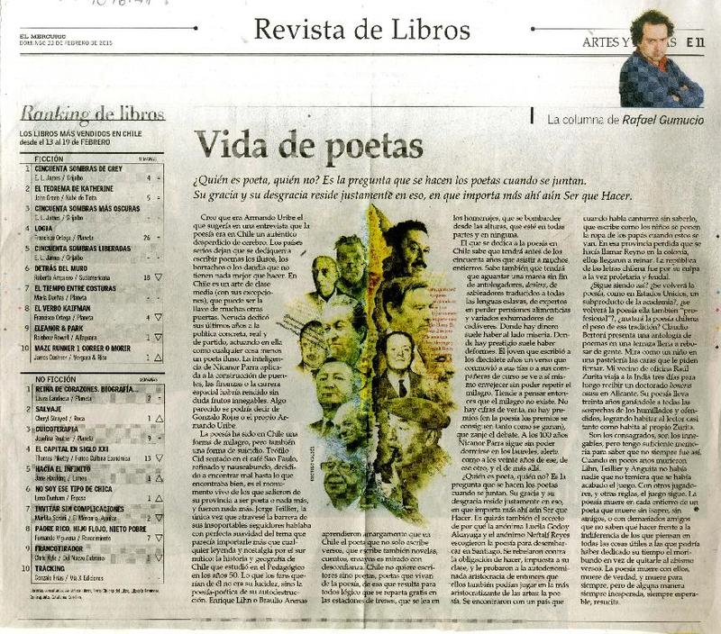 Autores chilenos - Neruda, Pablo - Lihn, Enrique - Rojas, Gonzalo - Parra, Nicanor - Cid, Teófilo - Teillier, Jorge - Uribe, Armando