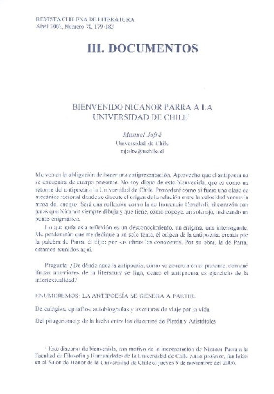 Ibáñez Langlois, José Miguel - Autores chilenos - Parra, Nicanor - Barrenechea, Julio - Araneda Bravo, Fidel