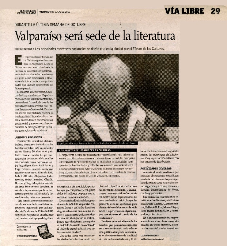 Valparaíso será sede de la literatura. [artículo] Leonardo Robles.