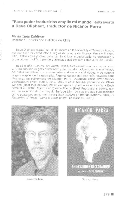 Entrevistas - Oliphant, Dave - Parra, Nicanor - Lihn, Enrique - Autores chilenos