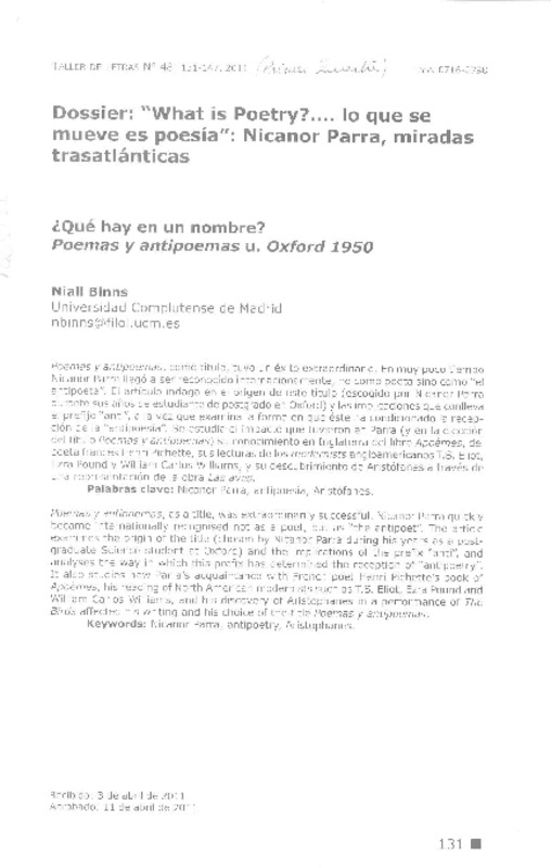 Tras la huella de los orígenes de la antipoesía en San Fabián de Alico [artículo] Carolina Marcos.