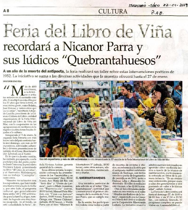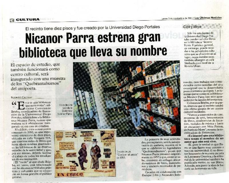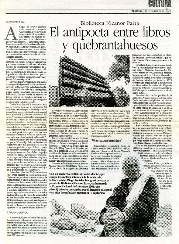 Abren Biblioteca Nicanor Parra con sus legendarios quebrantahuesos [artículo] Roberto Careaga C.