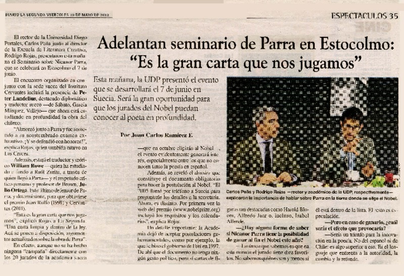 Adelantan seminario de Parra en Estocolmo: "Es la gran carta que nos jugamos" [artículo] Juan Carlos Ramírez F.