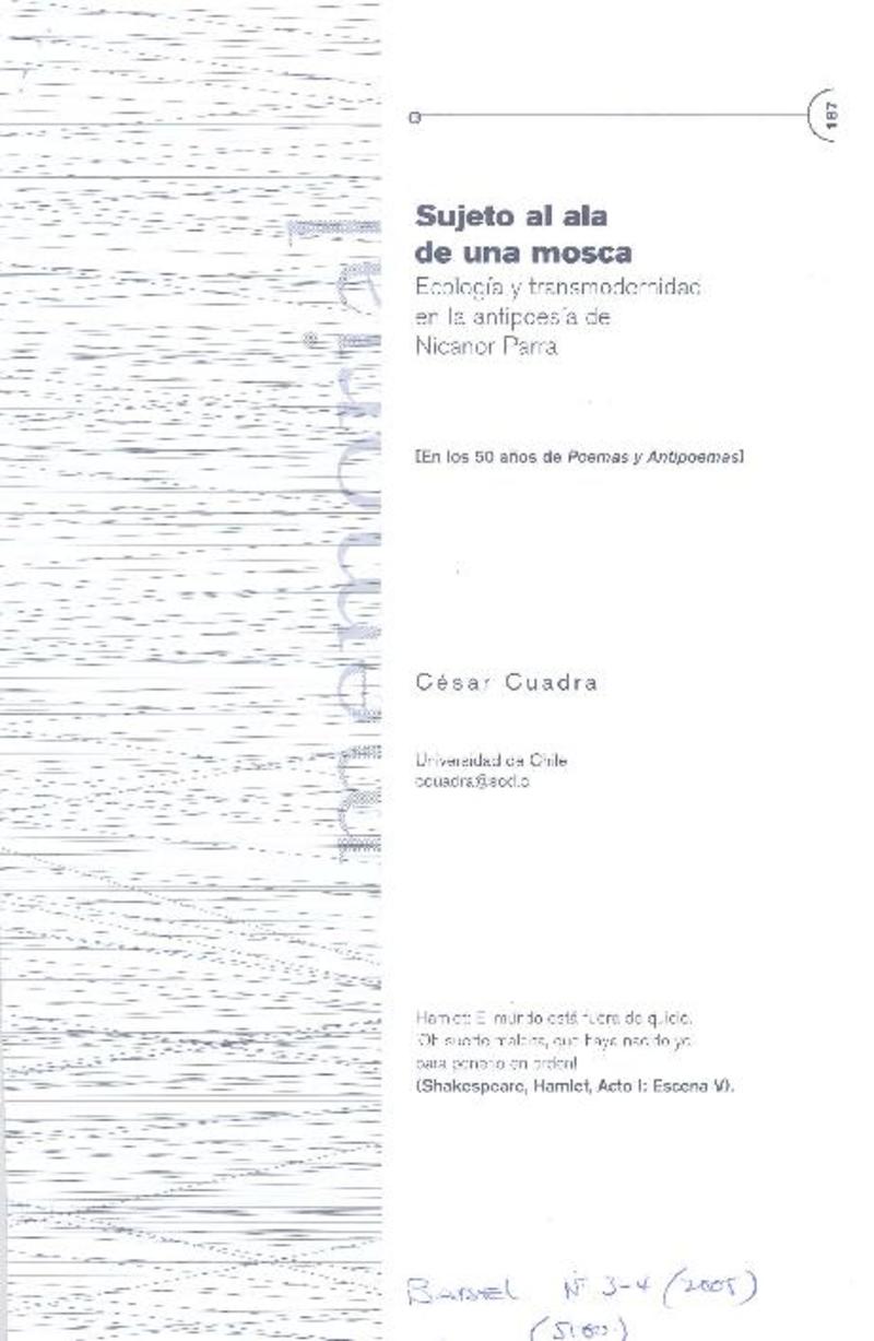 Sujeto al ala de una mosca [artículo] César Cuadra.
