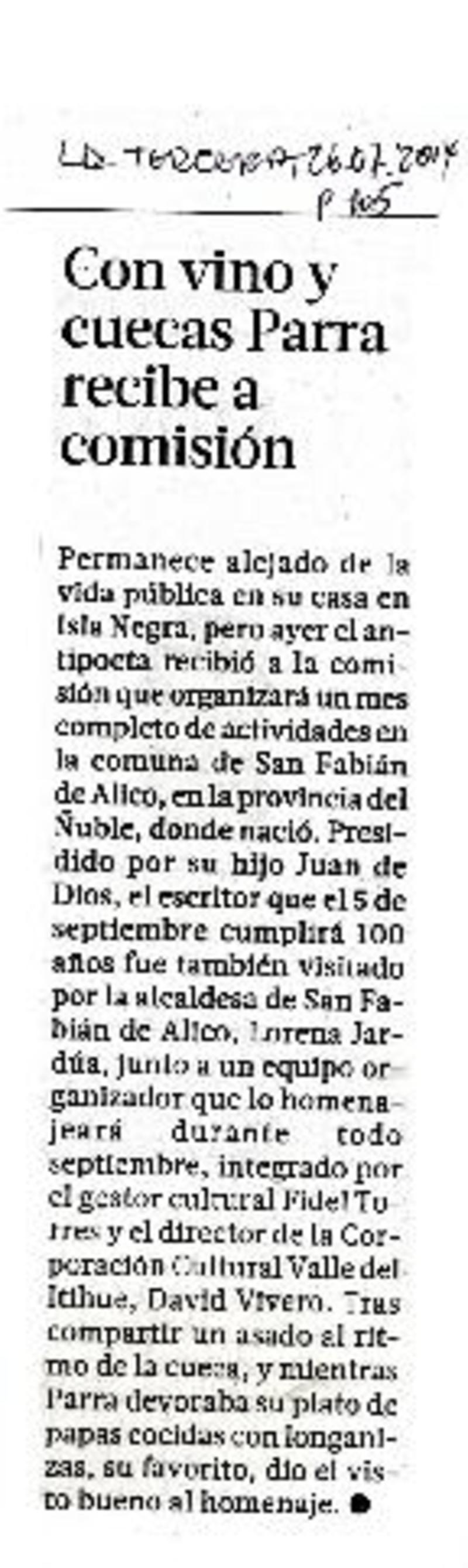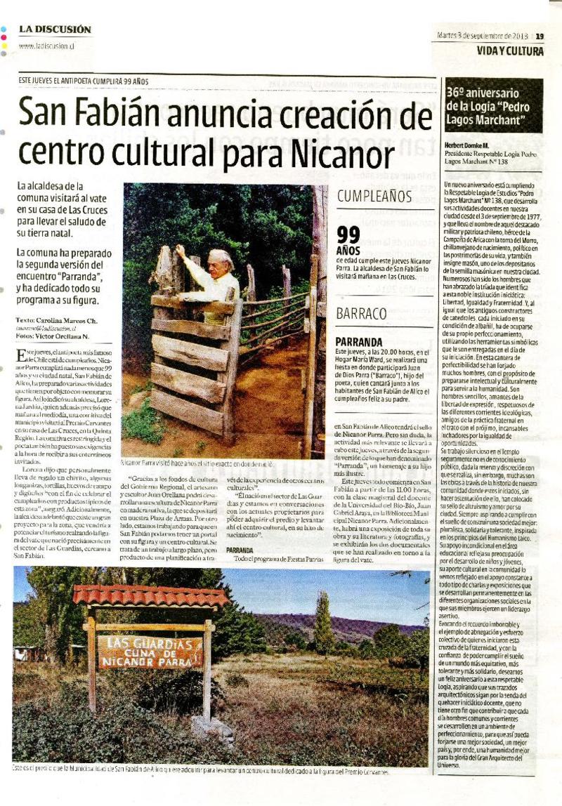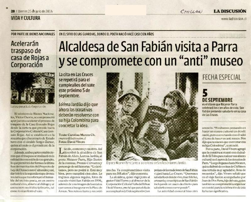 Alcaldesa de San Fabián visita a Parra y se compromete con un "anti" museo [artículo] Carolina Marcos Ch.