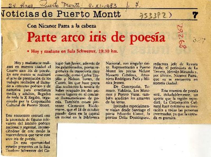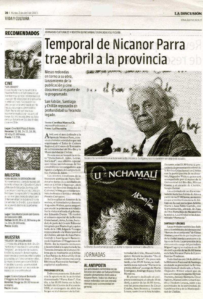 Temporal de Nicanor Parra trae abril a la provincia [artículo] Carolina Marcos Ch.