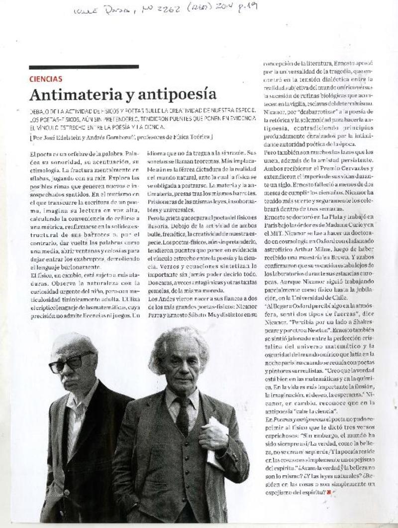 Antimateria y antipoesía [artículo] José Edelstein y Andrés Gomberoff