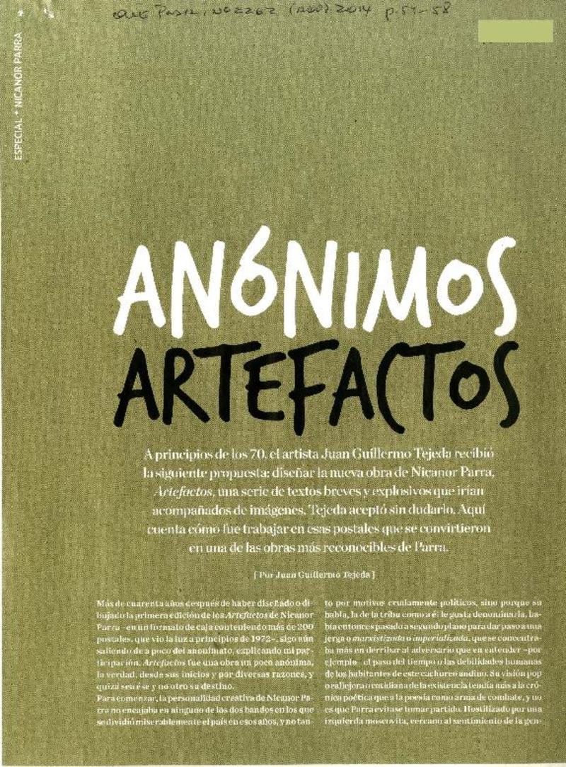 Anónimos artefactos [artículo] Juan Guillermo Tejeda