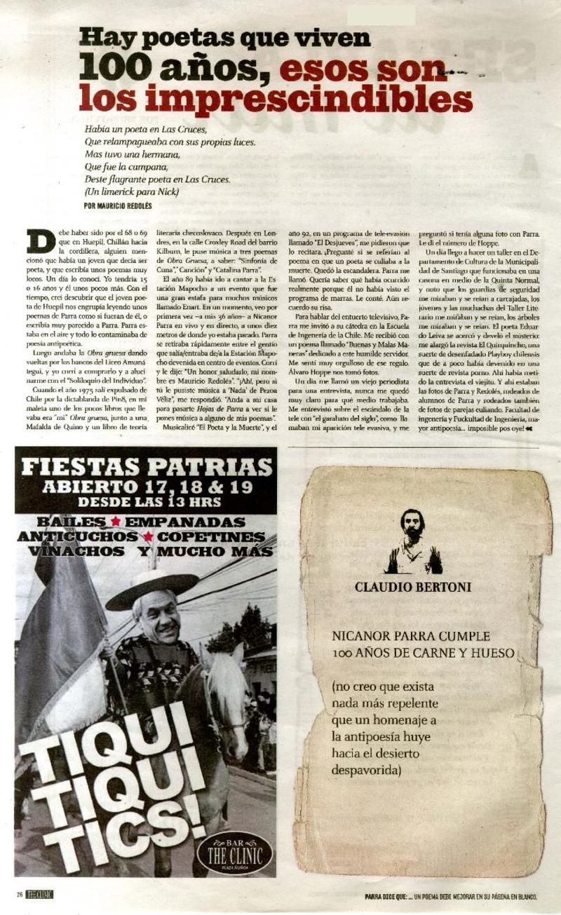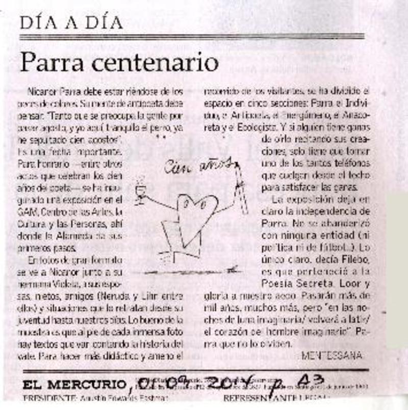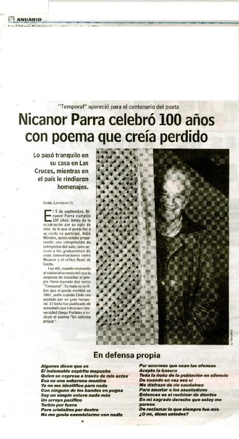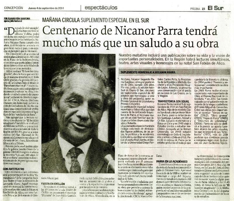 Suplemento homenaje a Nicanor Parra en su cumpleaños número 100 [artículo]