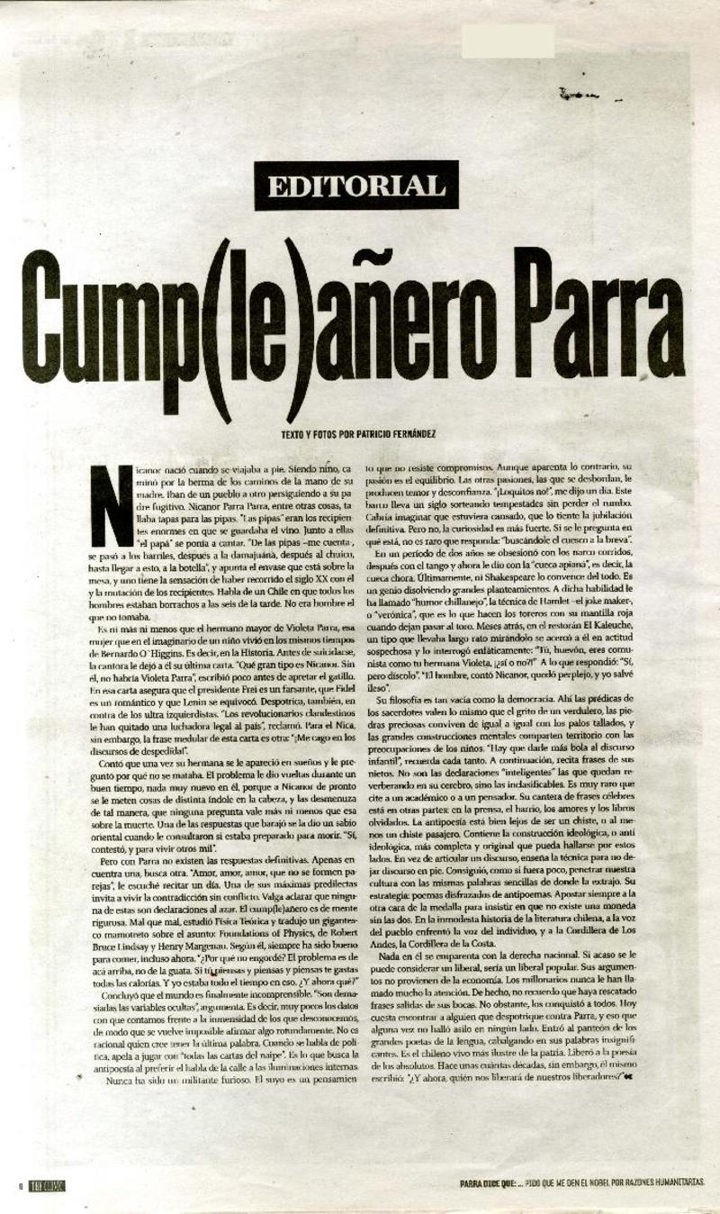 Torta de no-cumpleaños para Nicanor Parra [artículo] Enrique Lafourcade.