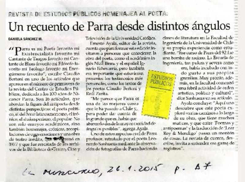 Un recuento de Parra desde distintos ángulos [artículo] Daniela Sánchez M.