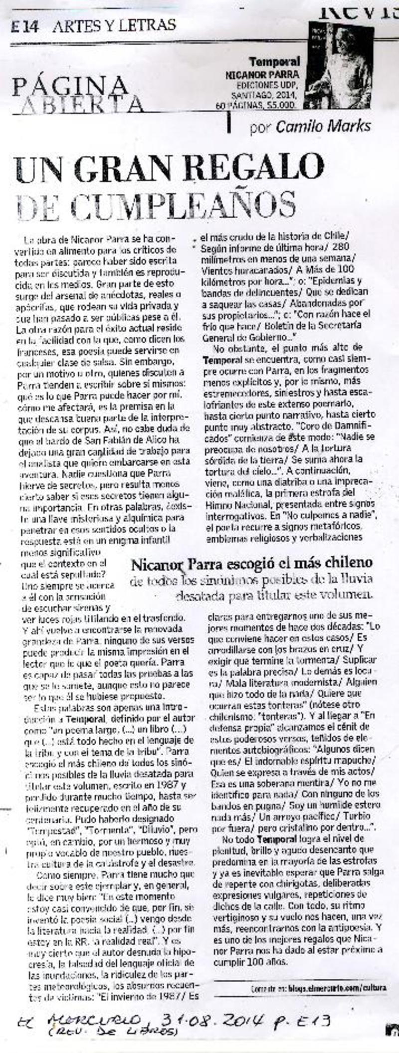 Un gran regalo de cumpleaños [artículo] Camilo Marks.