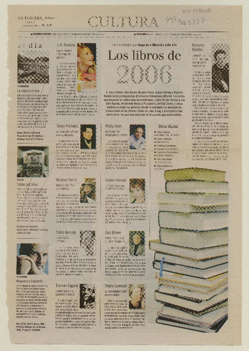 Autores chilenos - Neruda, Pablo - Serrano, Marcela - Allende, Isabel - Parra, Nicanor - Bolaño, Roberto - Rojas, Manuel - Sepúlveda, Luis - Donoso, José - Valdivieso, Mercedes - Gertner, María Elena - Serrano, Elisa