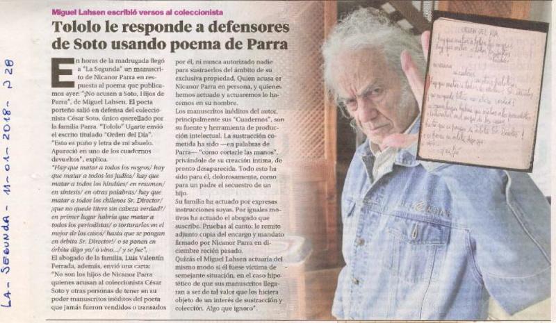 Tololo le responde a defensores de Soto usando poema de Parra [artículo].