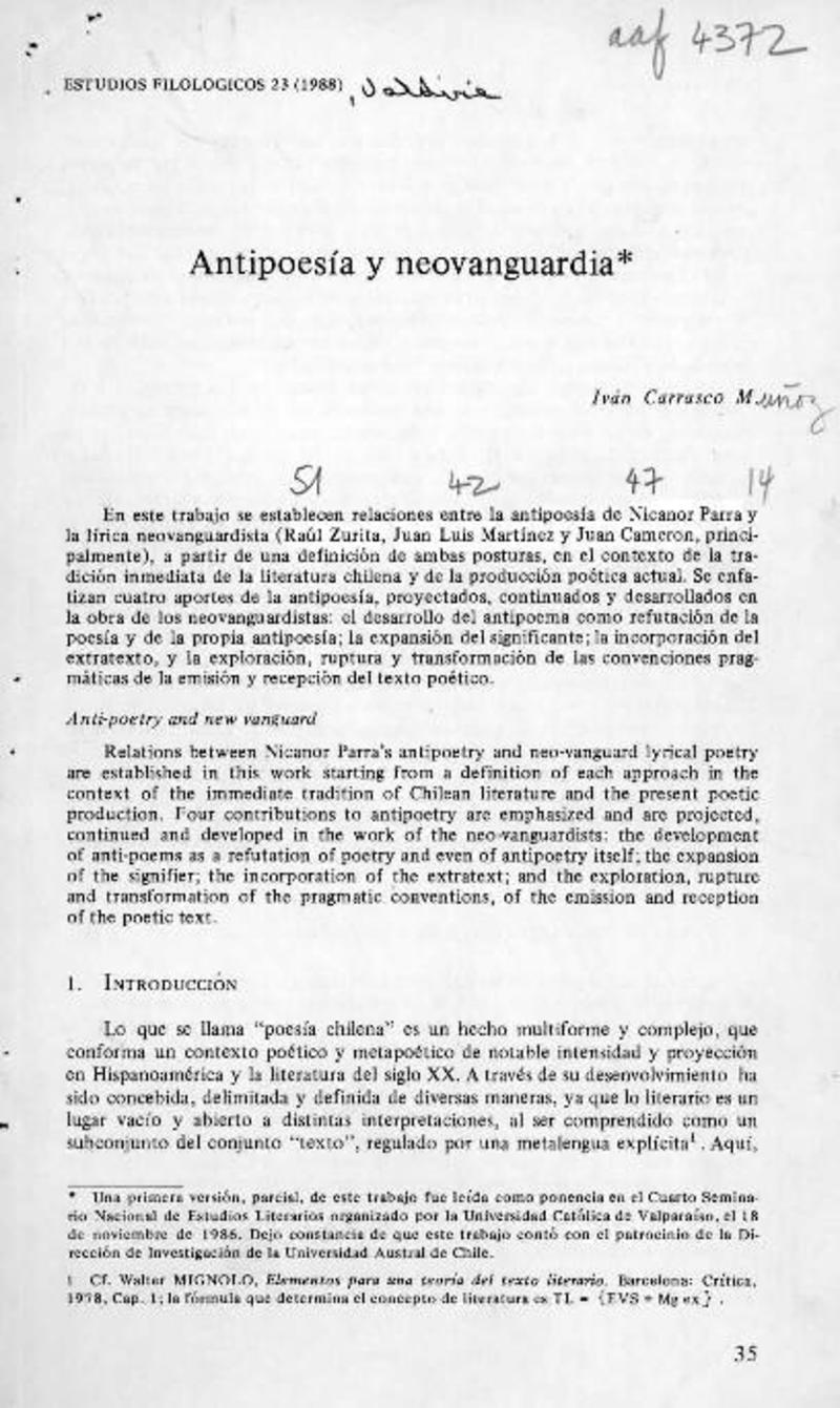 Antipoesía y neovanguardia [artículo] Iván Carrasco M.