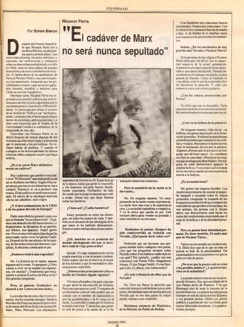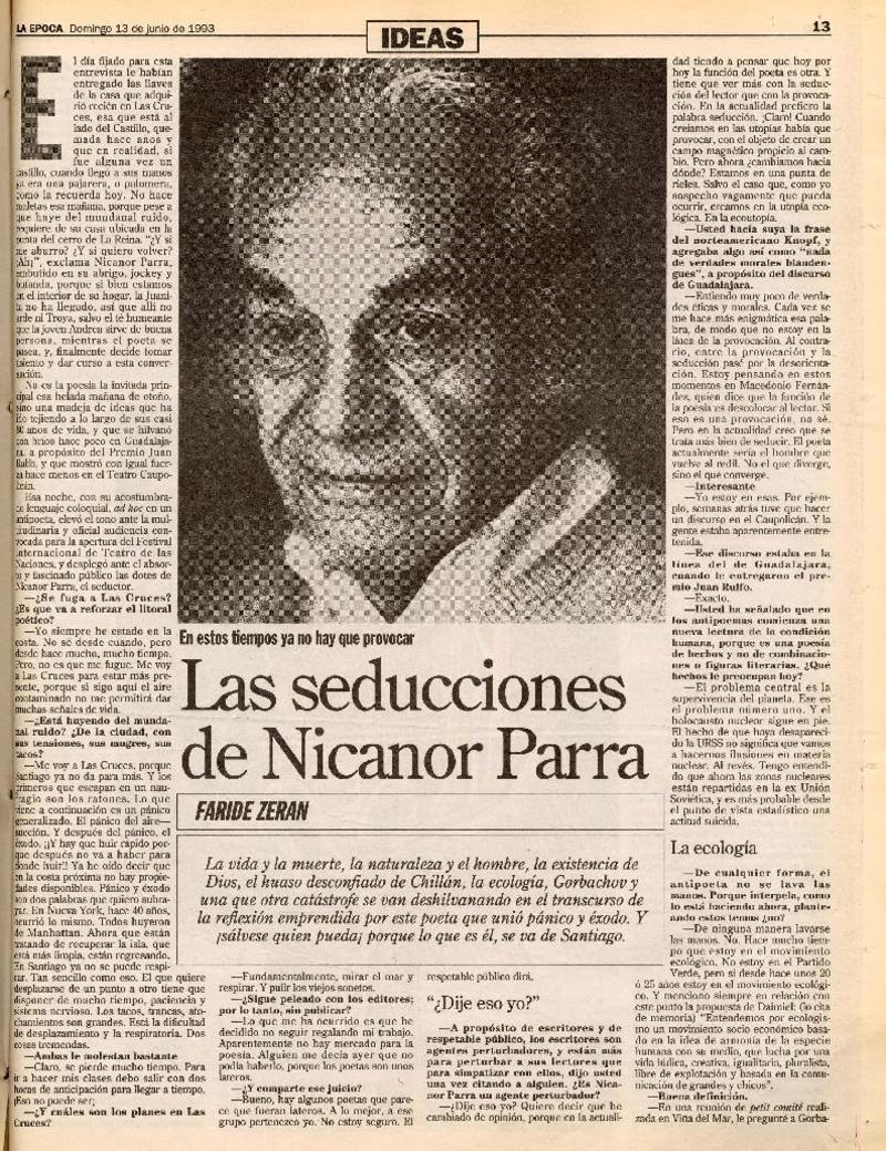 Anti entrevista a la poesía de Nicanor Parra [artículo] Floridor Pérez.