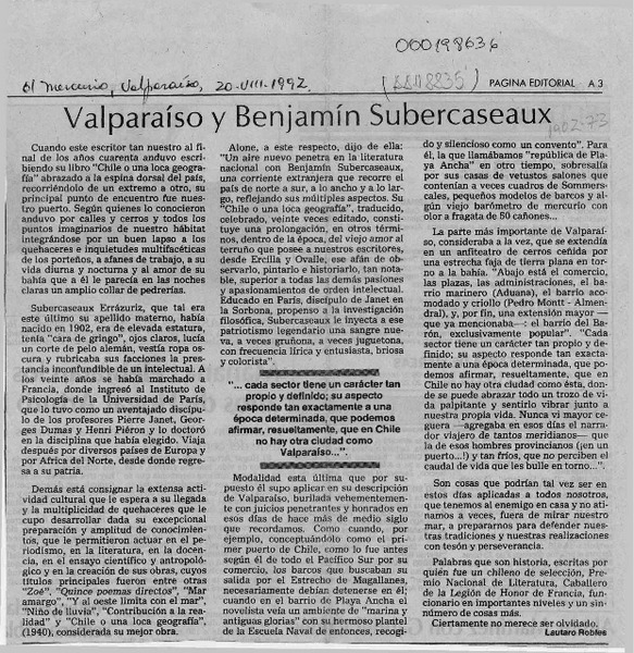 Valparaíso y Benjamín Subercaseaux [artículo] Lautaro Robles.