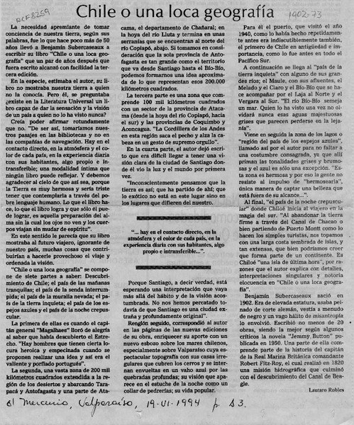 Chile o una loca geografía [artículo] Lautaro Robles.