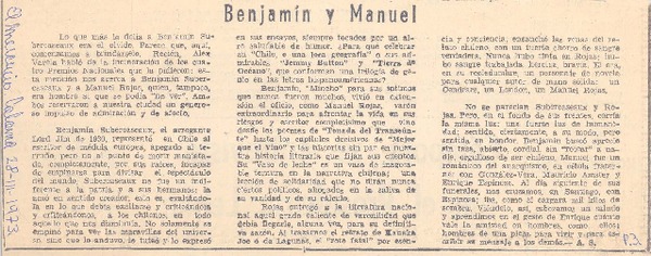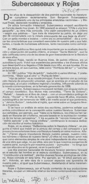 Homenaje a Manuel Rojas y Benjamín Subercaseaux. [artículo]