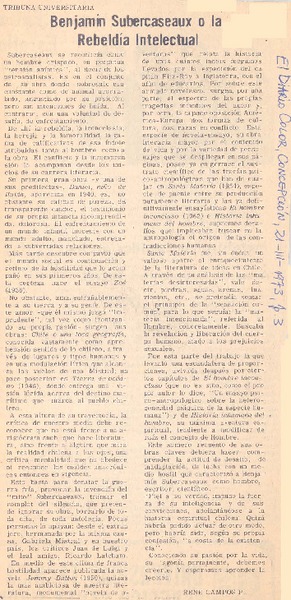 Benjamín Subercaseaux o la rebeldía intelectual [artículo] René Campos P.