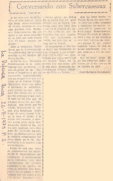 Conversando con Subercaseaux [artículo] José Martínez Fernández.