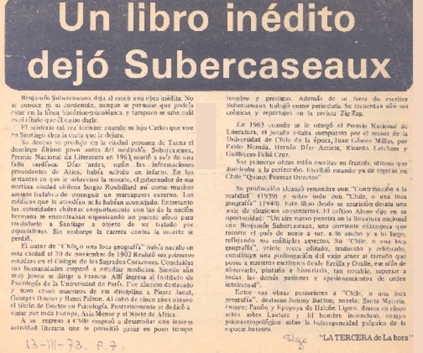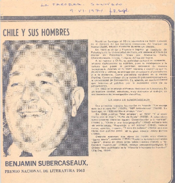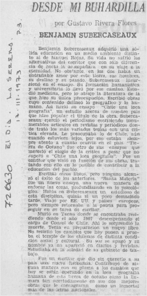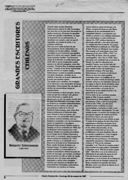 Micro semblanza de Benjamín Subercaseaux [artículo] J.R.F.