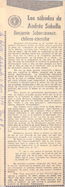 Benjamín Subercaseaux chileno ejemplar [artículo] Andrés Sabella.