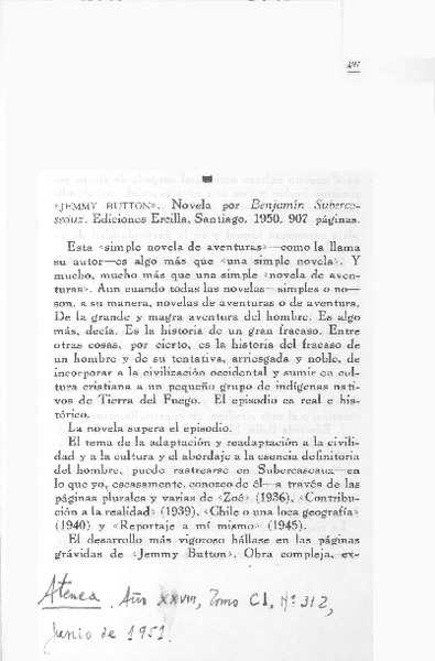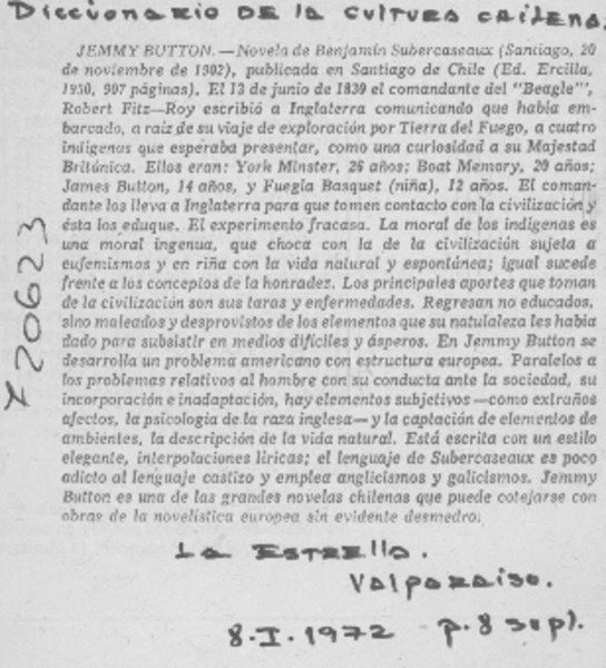 Autores chilenos - Subercaseaux, Benjamín - Jemmy Button