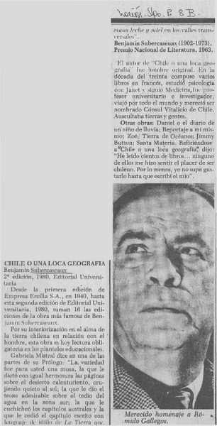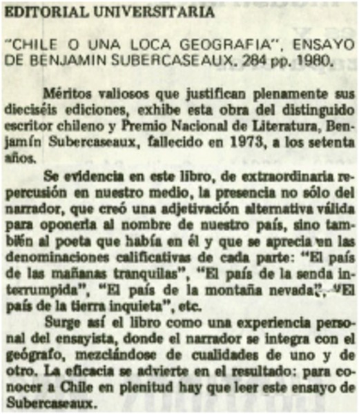 Subercaseaux, Benjamín - Autores chilenos - Chile o una loca geografía