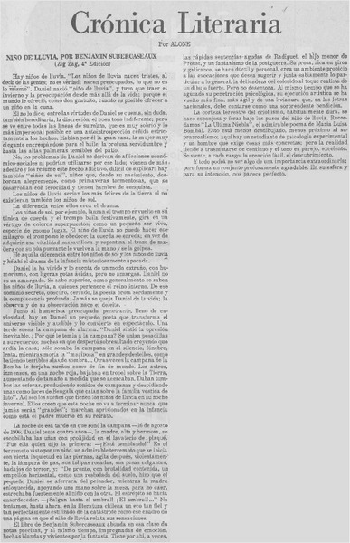 Autores chilenos - Subercaseaux, Benjamín - Niño de lluvia