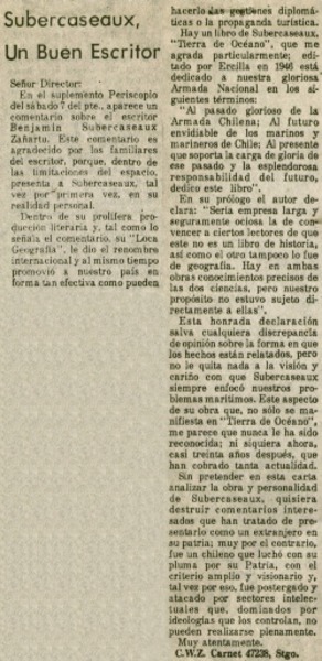 Subercaseaux, un buen escritor [artículo] C.W.Z.
