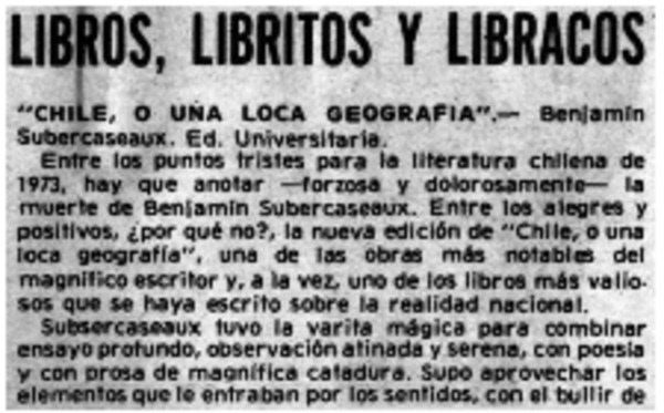 Autores chilenos - Subercaseaux, Benjamín - Geografía de Chile