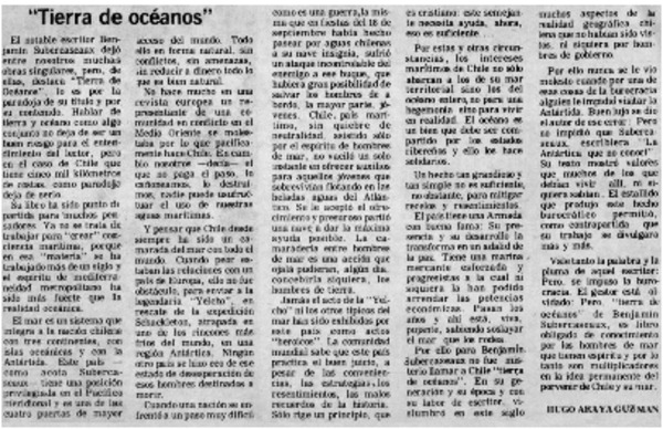 Tierra de Océanos [artículo] Hugo Araya Guzmán.