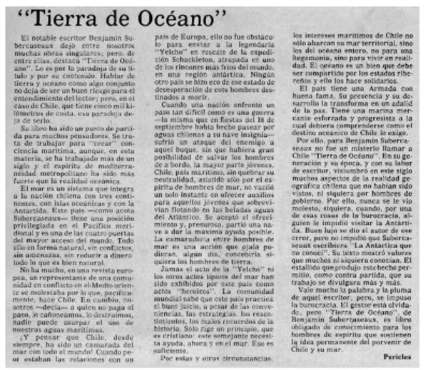 Autores chilenos - Subercaseaux, Benjamín - Tierra de Océanos