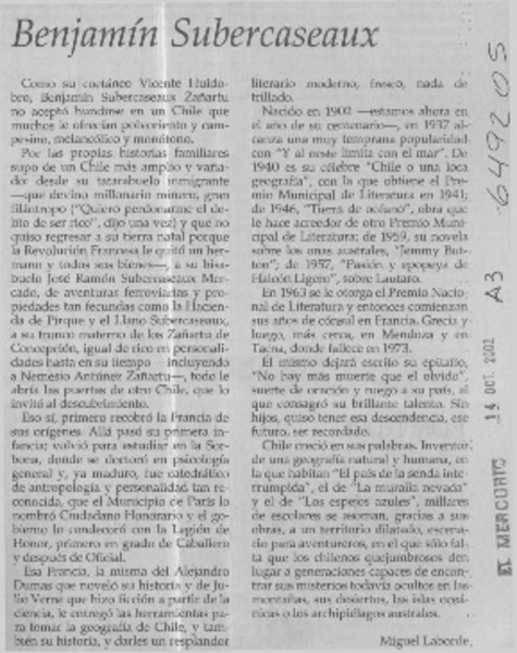 Benjamín Subercaseaux [artículo] Miguel Laborde