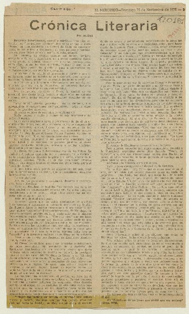 Benjamín Subercaseaux [artículo] Oscar Pinochet de la Barra