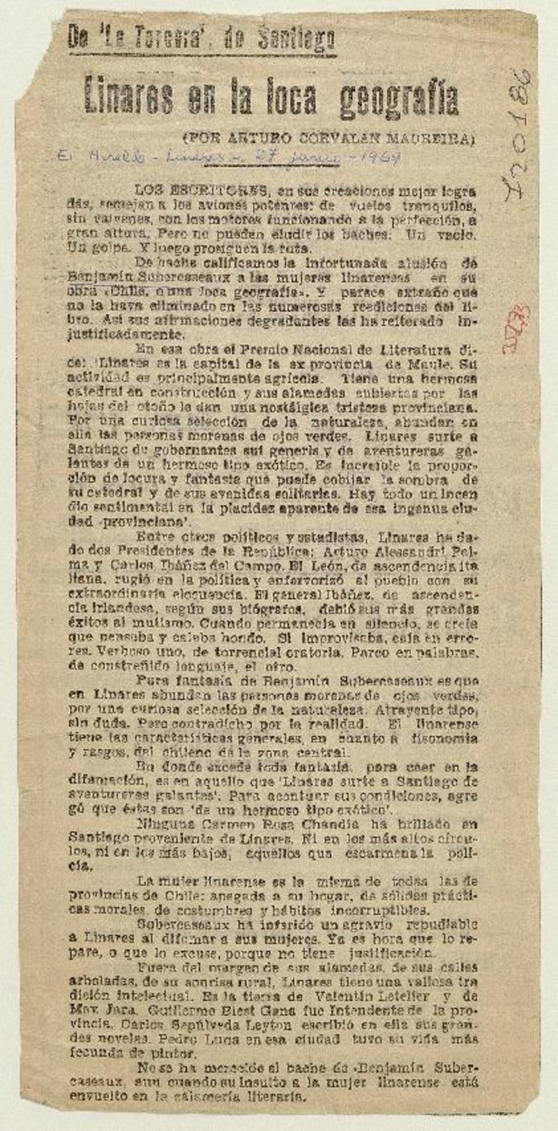 Linares en la loca geografía [artículo] Arturo Corvalán Maureira.