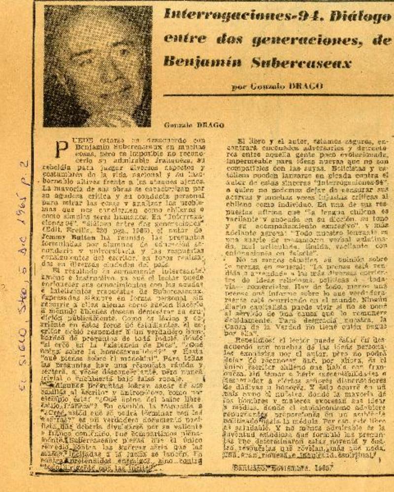 Interrogaciones-94. Diálogo entre dos generaciones, de Benjamín Subercaseaux [artículo] Por Gonzalo Drago.