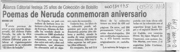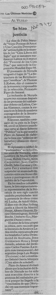 Libro con estudio crítico de Neruda se agota en España [artículo].
