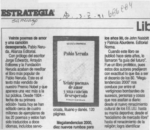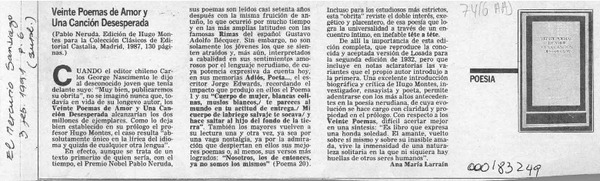 Veinte poemas de amor y una canción desesperada [artículo] Ana María Larraín.