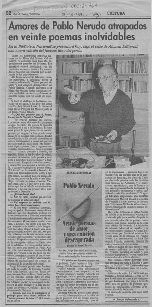 Amores de Pablo Neruda atrapados en veinte poemas inolvidables [artículo] Samuel Valenzuela Y.