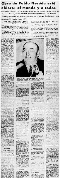 Obra de Pablo Neruda está abierta al mundo y a todos. [artículo]