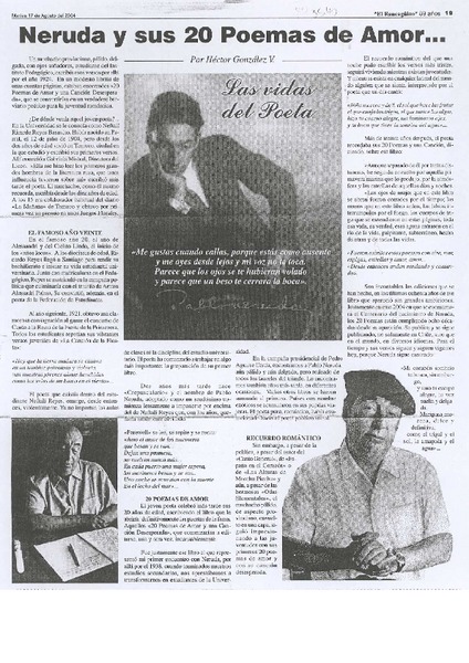 Neruda y sus 20 poemas de amor... [artículo]Héctor González V.