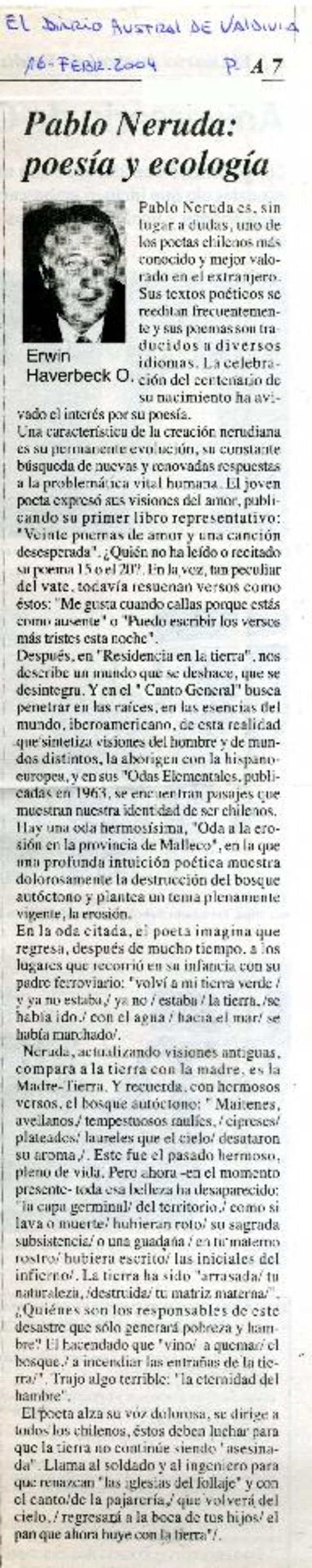 Pablo Neruda : poesía y ecología [artículo] Erwin Haverbeck.